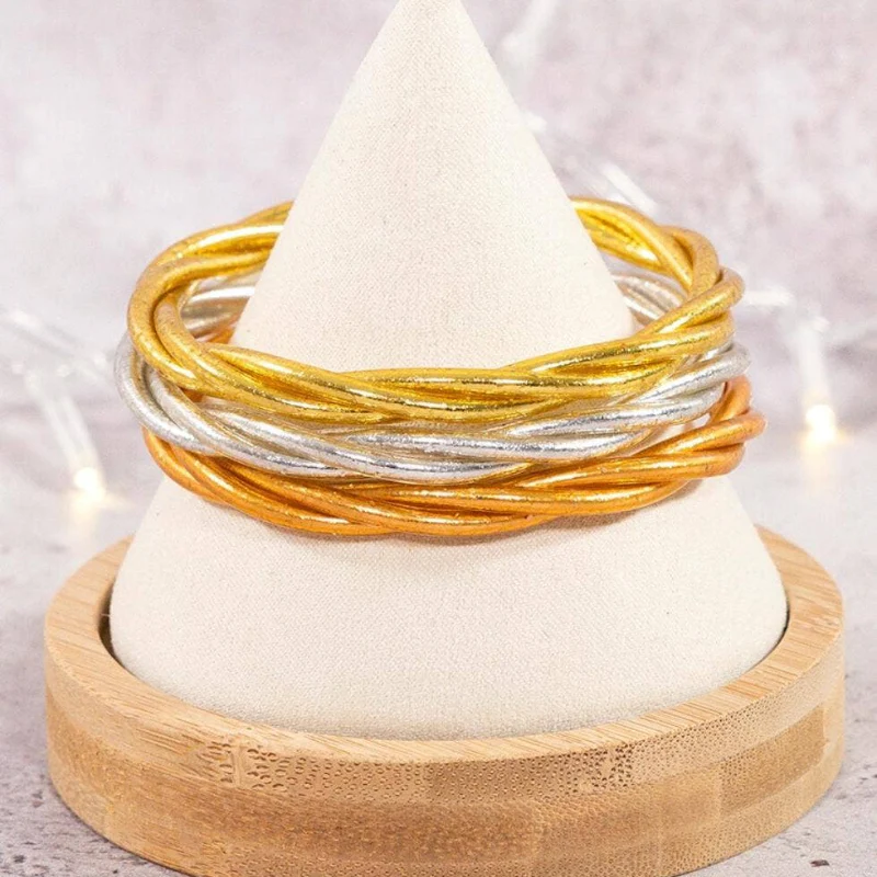 « Rayonnez avec ces véritables bracelets bouddhistes en jonc doré . Connus sous le nom de « kumlaï », traduit du Thaïlandais par bracelet en or. Superbe amulette porte bonheur, chaque bracelet est fabriqué dans un atelier en Thaïlande.