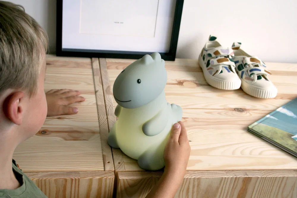 Avec ce sympathique dino à vos côtés, la peur du noir n’est plus qu’un mauvais souvenir ! Jéroom, le compagnon réconfortant de votre enfant, chasse les mauvais rêves et apporte une douce lumière à la chambre, créant un sentiment familier à l’heure du coucher. Fabriqué en silicone de haute qualité, Jéroom est non seulement sans danger pour les petits, mais il est également très doux au toucher. De plus, vous pouvez choisir d’éteindre Jéroom automatiquement après 12 minutes ou de le laisser briller toute la nuit. Un mélange parfait de confort et d’assurance pour une bonne nuit de sommeil.