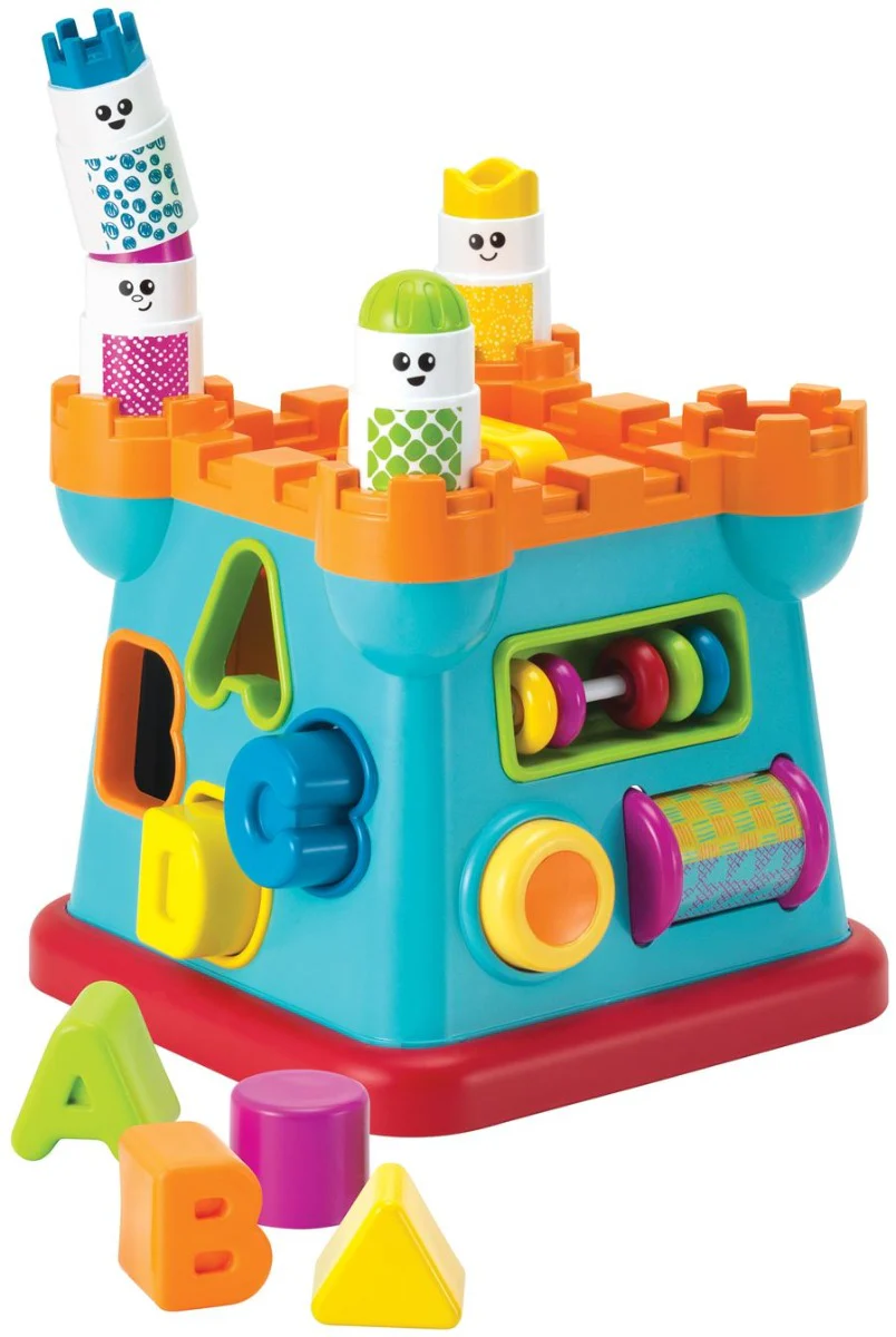 Laissez votre enfant découvrir le plaisir de ce jouet coloré en forme de château à trier ! Les murs du château sont décorés de découpes représentant différentes formes, chiffres et lettres, ce qui permet d’enseigner la reconnaissance des formes et de développer la motricité. Le château de tri est doté d’accessoires amusants tels qu’un bouton qui émet un son, un rouleau coloré et des cloches qui se déplacent d’un côté à l’autre. Votre enfant peut compter les chiffres en plaçant les briques dans les bonnes cases, et empiler les chiffres au sommet du château pour relever un nouveau défi. Retournez le château pour vous amuser encore plus !