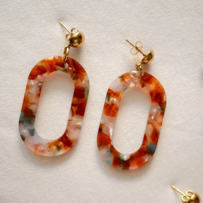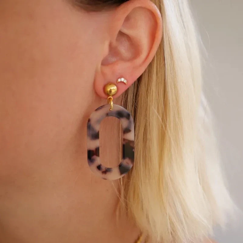 - Accroche en acier inoxydable plaqué or 18K & boucle en acétate