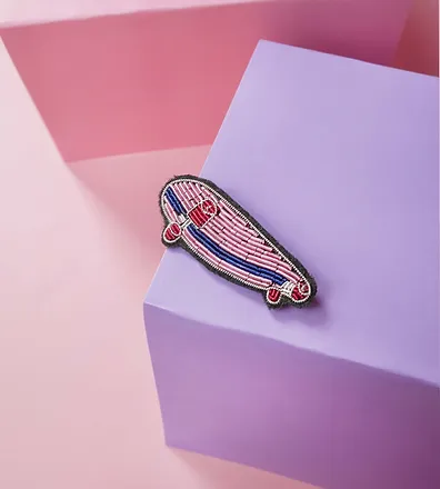 Une broche Skate rétro vintage brodée entièrement à la main en cannetille