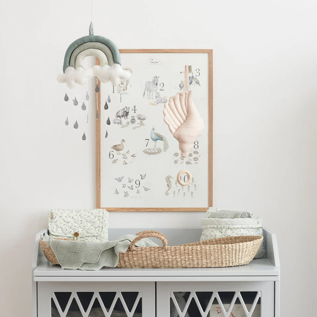 Adorable mobile musical en forme de coquillage qui ajoute sophistication et poésie à toute chambre d’enfant. Parfait pour le lit de bébé, dans le landau ou près de la commode. Le mobile offre une contemplation apaisante à bébé lors du changement de situation ou au moment de l’endormissement. Tirez sur l’anneau en bois et le […]