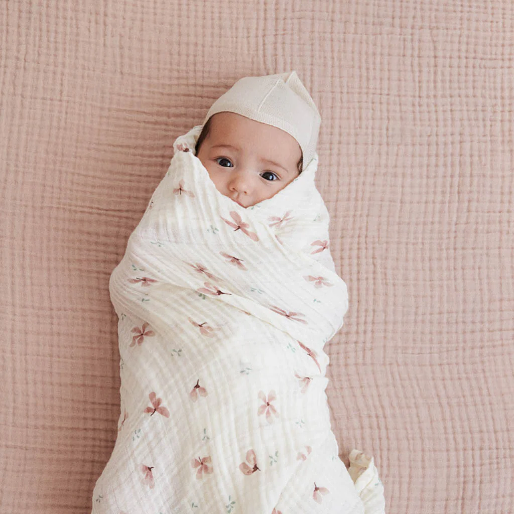 Le drap hydrophile XL de Cam Cam Copenhagen mesure 120 x 120 centimètres. Ils conviennent donc parfaitement à l’emmaillotage. En outre, vous pouvez les utiliser à la maison ou en déplacement comme serviette, tapis de jeu, couverture, crachoir et protection solaire.