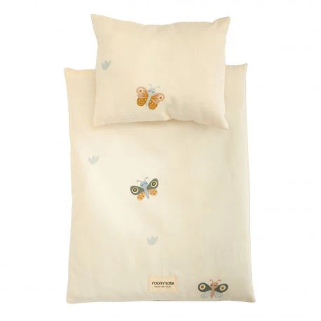 La literie de poupée Roommate convient à un lit de poupée et a des dimensions de 32 x 40 cm. La literie présente une belle impression avec un tigre ou un bébé papillon. De plus, la literie de la colocation est fabriquée en coton 100% biologique et est assortie à la véritable literie de la colocation. Ainsi, tout le monde dort dans le même design. Il n’y a rien de plus amusant, n’est-ce pas ?