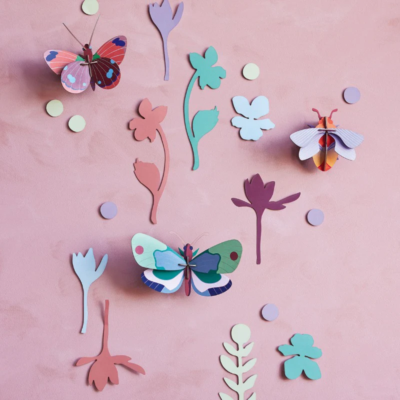 Explorez la nature, étudiez la faune et la flore du monde entier ! Un coffret à déballer avec des papillons 3D en carton à monter et leur végétation.