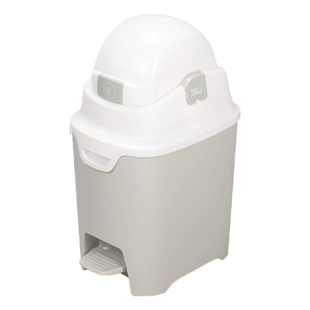 Le DiaperChamp One mains libres est un seau à couches compact, tendance et hygiénique doté de la technologie anti-odeurs de DiaperChamp. Grâce à une pédale, le DiaperChamp One mains libres s’ouvre facilement sans utiliser les mains. Le DiaperChamp One s’ouvre facilement sans l’aide des mains. possède un système unique qui permet de ranger les couches facilement et hermétiquement dans le seau. Convient également pour le matériel d’incontinence (grand volume).
