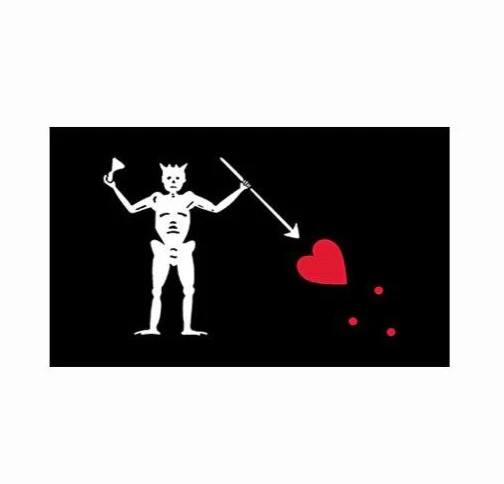 Faites régner la terreur des mers avec le Drapeau Pirate Barbe Noire : un emblème historique au squelette armé et cœur transpercé, symbole légendaire parfait pour les passionnés d’histoire et de piraterie authentique.