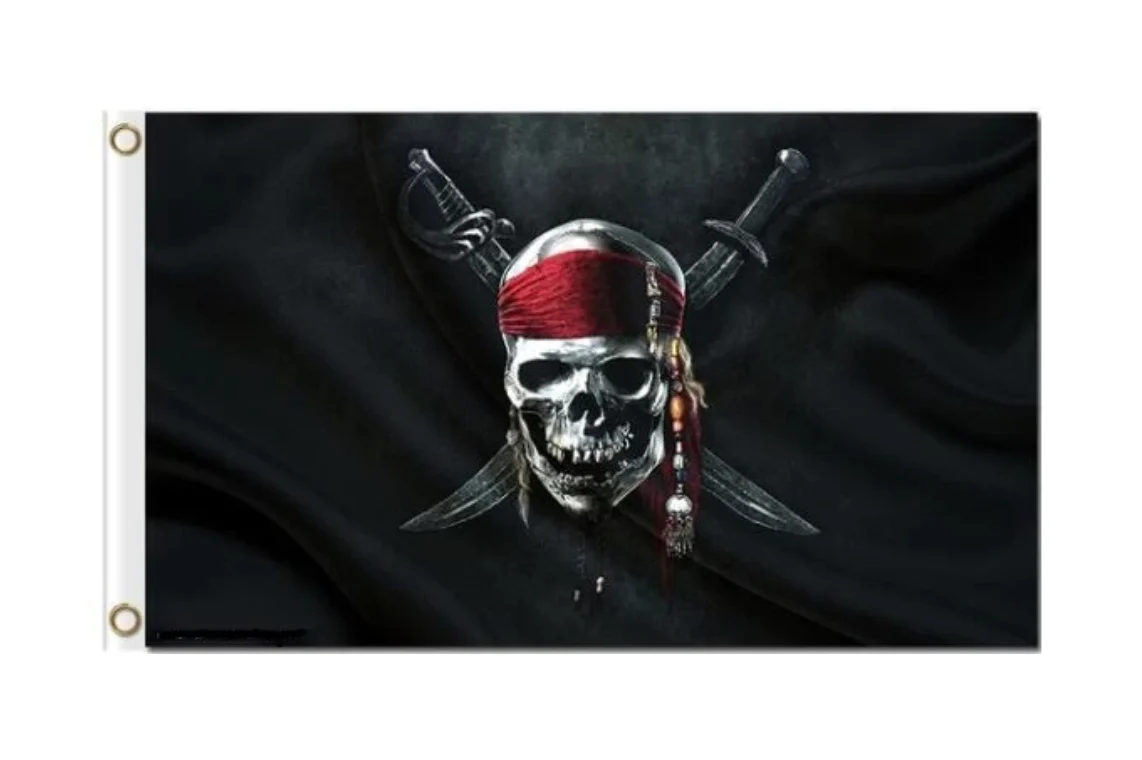 Le Drapeau Pirate des Caraïbes est une fidèle représentation de l’emblématique drapeau vu dans la série Pirate des Caraïbes. Sur un fond noir, une tête de mort grise, caractérisée par des dreadlocks et des dents manquantes, porte un bandana rouge. En arrière-plan, deux sabres pirates entrecroisés ajoutent une touche d’authenticité et d’aventure. Idéal pour décorer une salle de cinéma, une chambre ou pour être utilisé lors d’événements à thème, ce drapeau est parfait pour les fans qui veulent capturer l’esprit rebelle et aventureux des pirates des Caraïbes. Un accessoire incontournable pour tout amateur de piraterie.