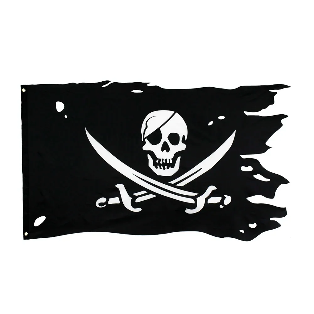 Faites flotter l’esprit corsaire avec le Drapeau Pirate Extérieur : un Jolly Roger usé et déchiré aux sabres croisés, robuste et authentique, parfait pour jardins, fêtes à thème et passionnés de piraterie.