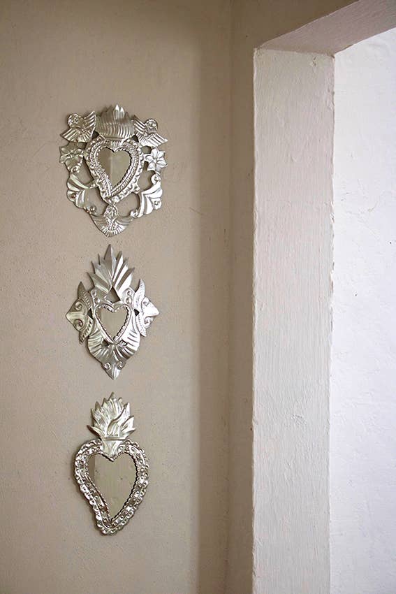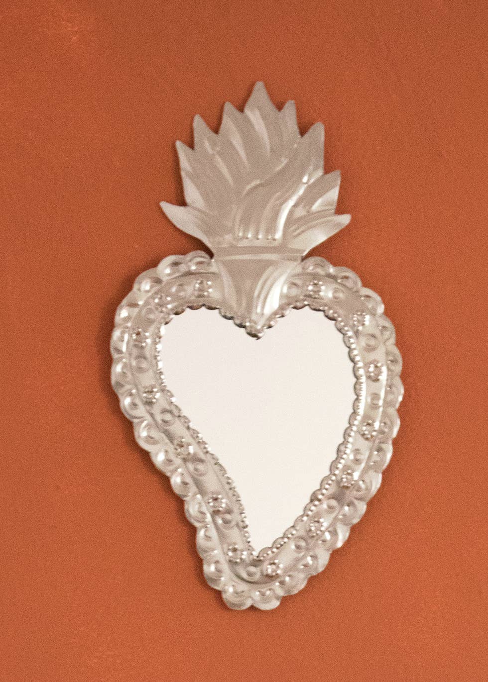 These large sacred hearts tin ornaments with mirror are