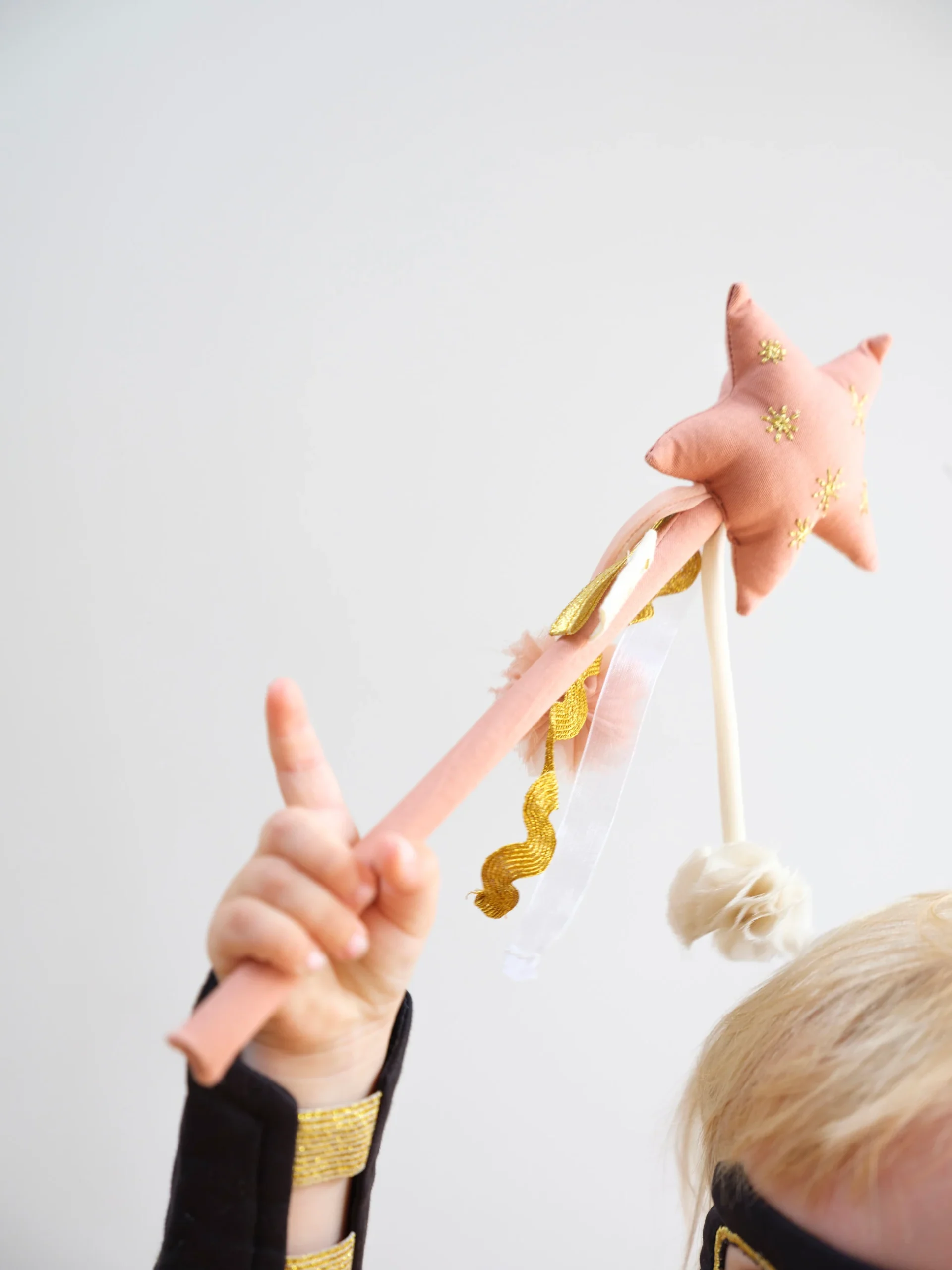 Avec la baguette magique, votre enfant peut saupoudrer de la poussière de fée et de l’amour et créer ses propres histoires d’aventure. Fabriquée à partir de matériaux purs et non blanchis, la baguette magique est ornée de détails dorés et d’une étoile au sommet pour la rendre encore plus magique. Combinez la baguette avec le costume de fée pour une transformation rapide en fée et de nombreuses heures de jeu.