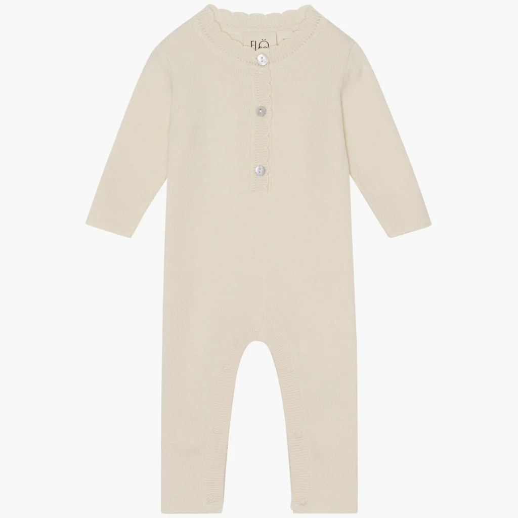 La grenouillère Kaya est fabriquée en coton biologique doux et tricoté pour le confort de bébé. Elle présente des manches régulières, des jambes droites et un col rond avec des boutons en perle pour faciliter l’habillage. Convient aux vêtements de tous les jours.