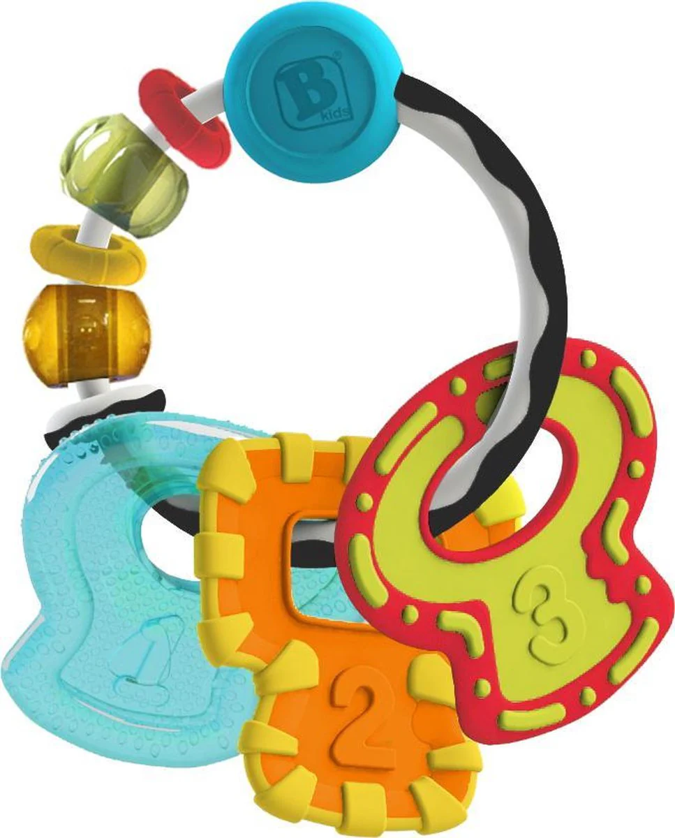 Cet anneau de dentition se compose d’un anneau avec des perles et des clés de différentes couleurs et textures. Chaque clé est un anneau de dentition différent. Laissez votre enfant choisir l’anneau de dentition qu’il préfère lorsque les dents poussent. L’un des anneaux de dentition est rempli d’eau. Lorsque vous mettez le hochet au réfrigérateur, il se refroidit, ce qui est très agréable pour les gencives sensibles.