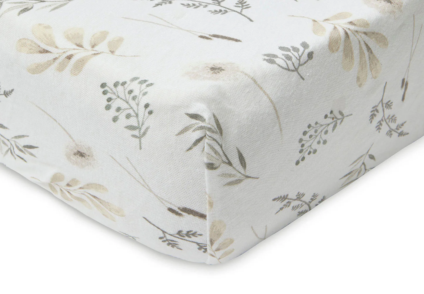 Les draps-housses avec l’imprimé Wild Flower sont fabriqués en jersey de coton souple et sont disponibles en taille pour berceau et lit d’enfant.