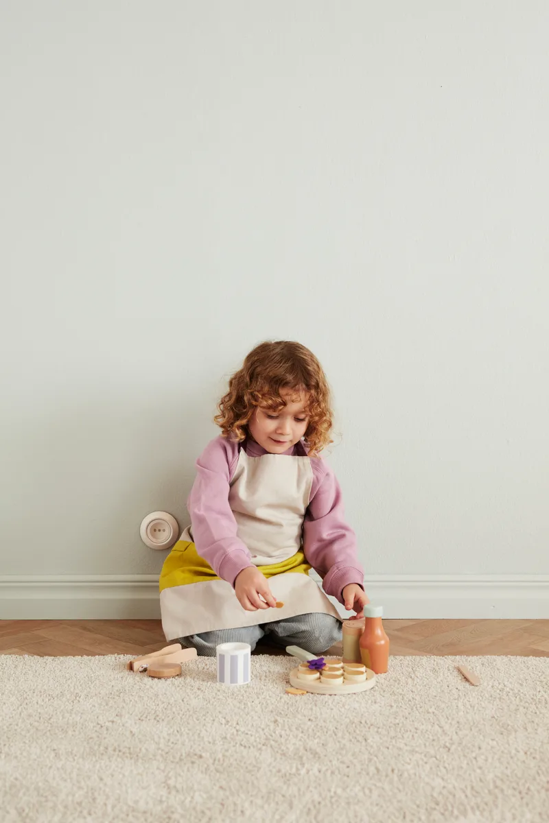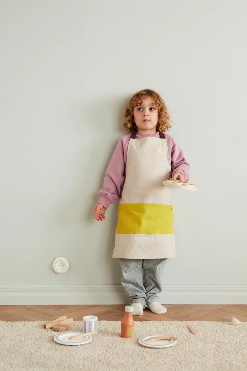 Tous les petits chefs ont besoin de leur propre tablier et serviette ! Ils sont parfaits pour aider dans la cuisine à la maison ou pour jouer avec les cuisines et les boîtes à outils de Kid’s Hub Concept. Ce tablier en coton possède deux poches pratiques pour ranger tous les objets essentiels, des outils jouets aux accessoires de cuisine tels que le fouet et les spatules.