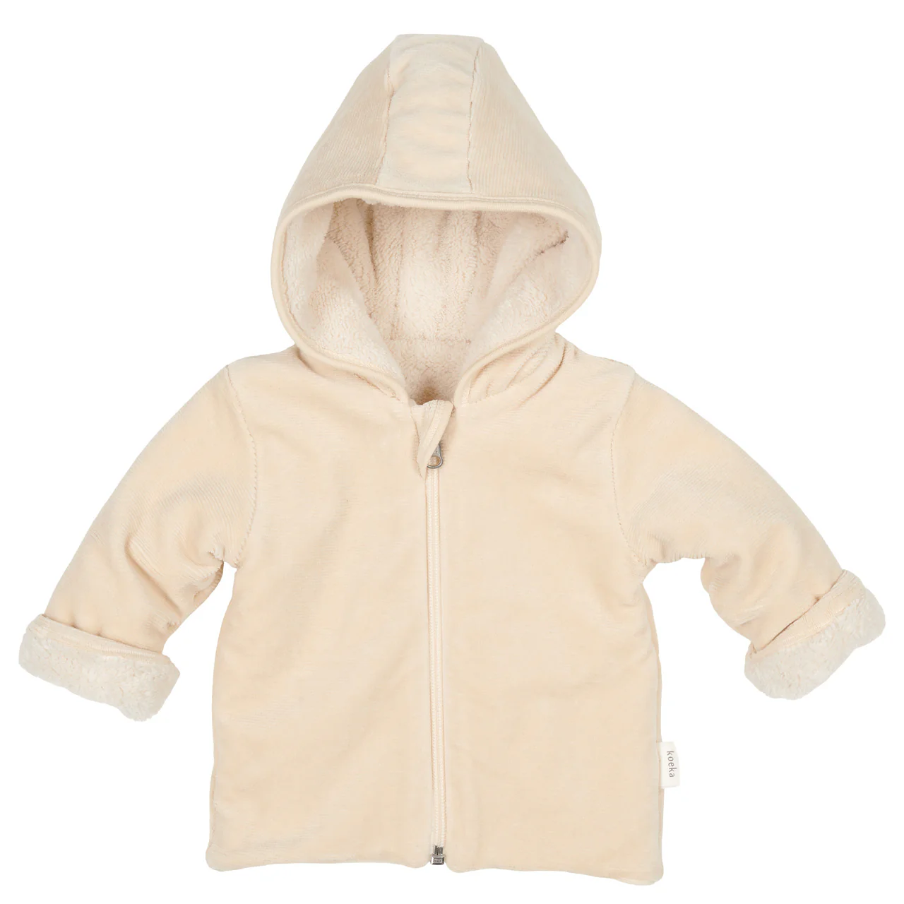 Cette veste réversible pour bébé est composée d’un tissu Oddi d’un côté et d’un doudou de l’autre. Comme la veste est réversible, vous pouvez changer de style quand vous en avez envie ! La veste est munie d’une capuche et se ferme à l’aide d’une fermeture à glissière dotée d’un protège-menton en haut. Les tissus utilisés rendent la veste confortable et gardent votre enfant bien au chaud !