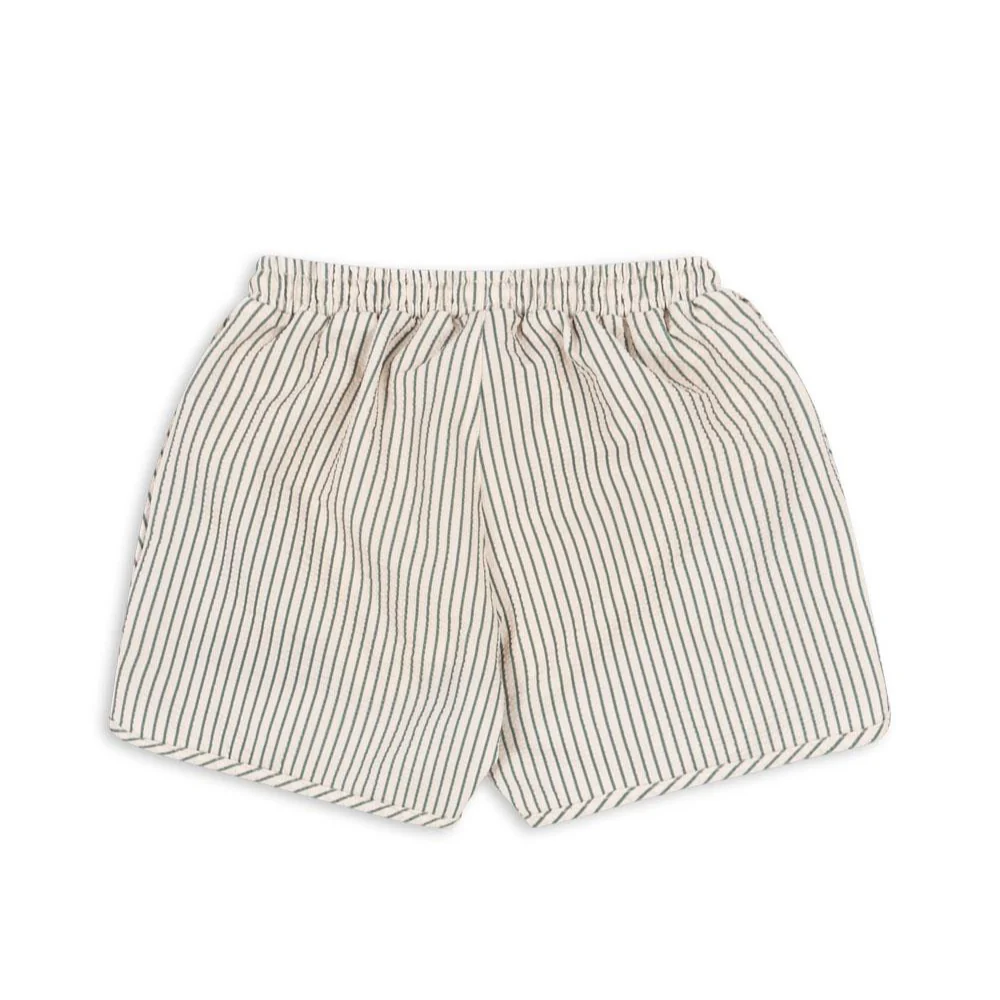 Le short de bain Konges Slojd Asnou Seersucker, au design Tea Stripe, vous permet de vous baigner avec style et fonctionnalité. Fabriqué en polyester recyclé, ce short léger et aéré est doté d’une taille ajustable confortable avec cordon de serrage pour garantir un ajustement parfait lors de toutes les aventures aquatiques.