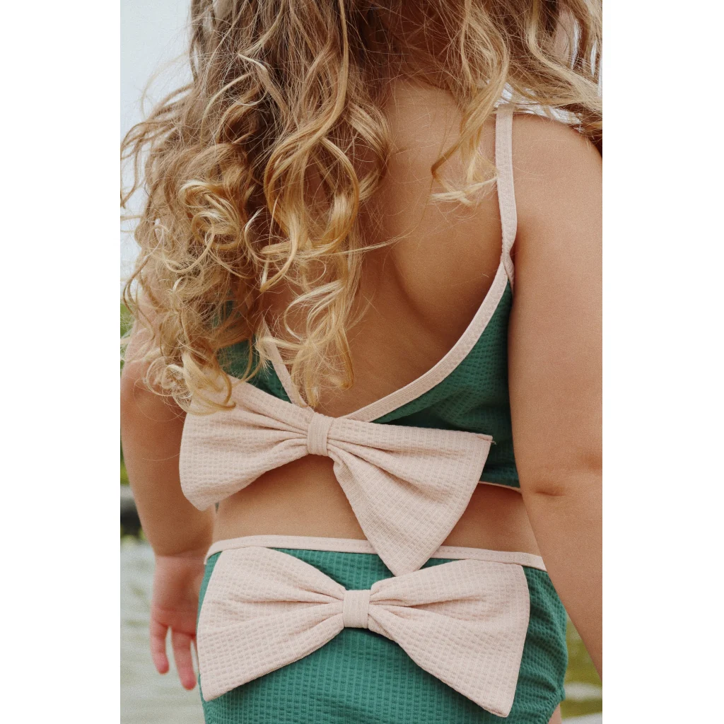 Nous allons nous baigner ! Le bikini Bowie Smoke Pine de Konges Slojd a des couleurs profondes et un beau gros nÅ“ud, ce bikini est très joli ! Le tissu doux et extensible assure un ajustement parfait du bikini. Ainsi, votre enfant sera bien maintenu dans tous les plaisirs de l’eau. Le bikini est fabriqué en élasthanne, ce qui rend le tissu agréable et souple et permet à votre enfant de bouger librement. Cela rend les jeux et les éclaboussures dans l’eau encore plus amusants ! Parfait pour une journée d’été à la plage ou pour jouer dans la piscine. Ce bikini est certifié Oeko tex.