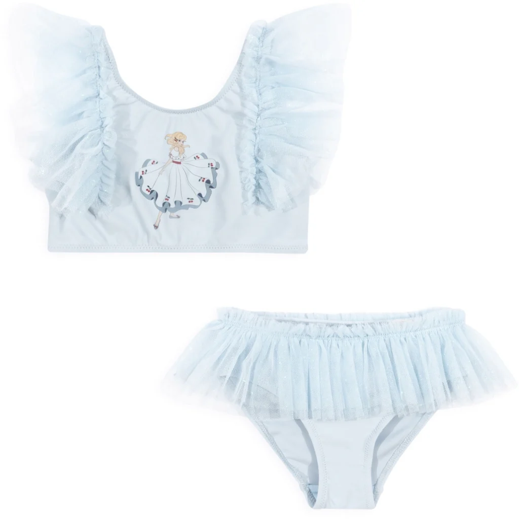 On va se baigner ! Le Konges Slojd – Bikini Strut Cameo Rose a des couleurs douces et un joli tulle, ce bikini est très joli ! Le tissu doux et extensible assure un ajustement parfait du bikini. Ainsi, votre enfant sera bien maintenu dans tous les plaisirs de l’eau. Le bikini est fabriqué en élasthanne, ce qui rend le tissu agréable et souple et permet à votre enfant de bouger librement. Cela rend les jeux et les éclaboussures dans l’eau encore plus amusants ! Parfait pour une journée d’été à la plage ou pour jouer dans la piscine. Ce bikini est certifié Oeko tex. Ce maillot de bain super mignon de Konges Sløjd est très joli !