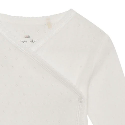 Ce magnifique body enveloppant classique, en coton 100 % biologique, est orné d’une jolie pointelle. La fermeture enveloppante pratique facilite l’habillage et le déshabillage.