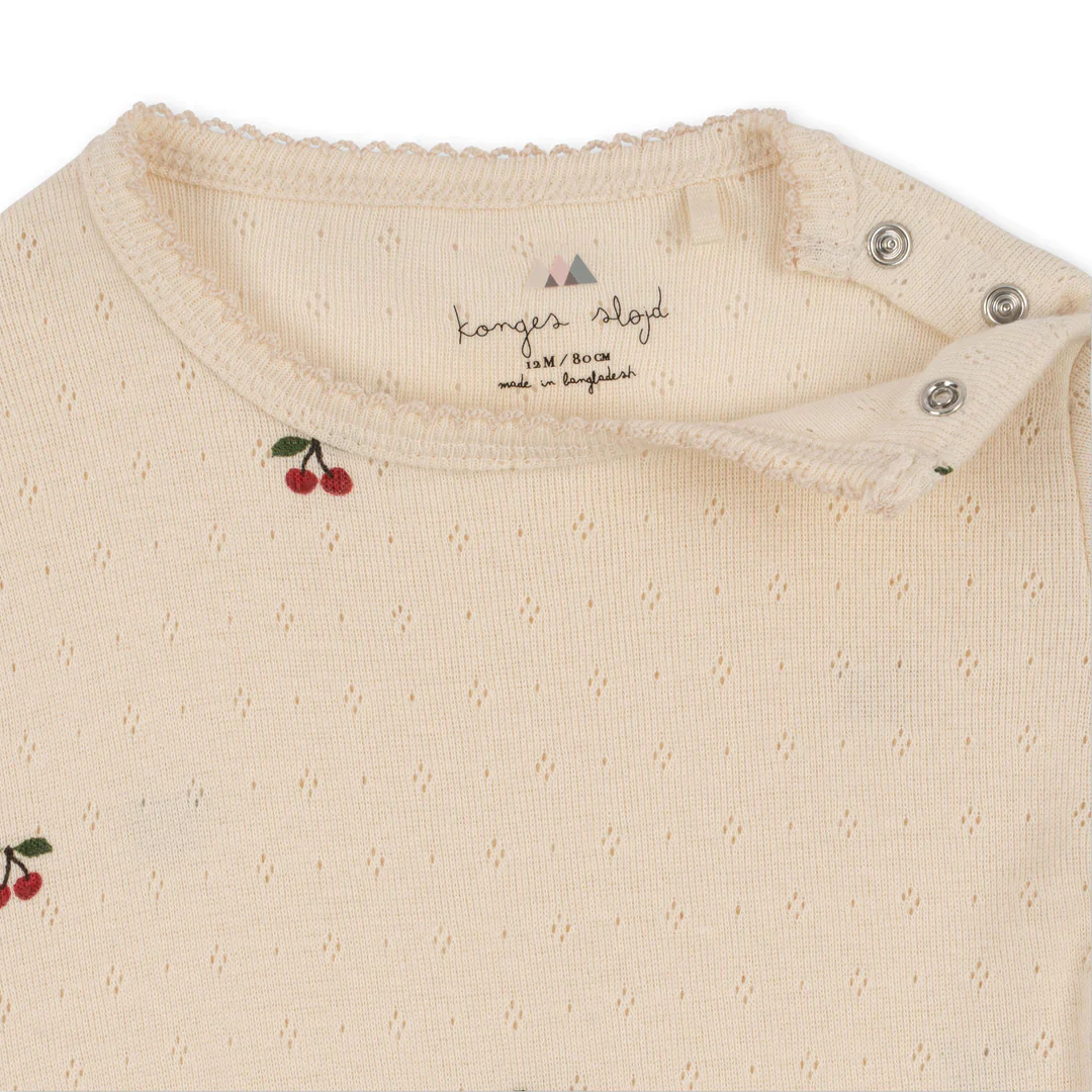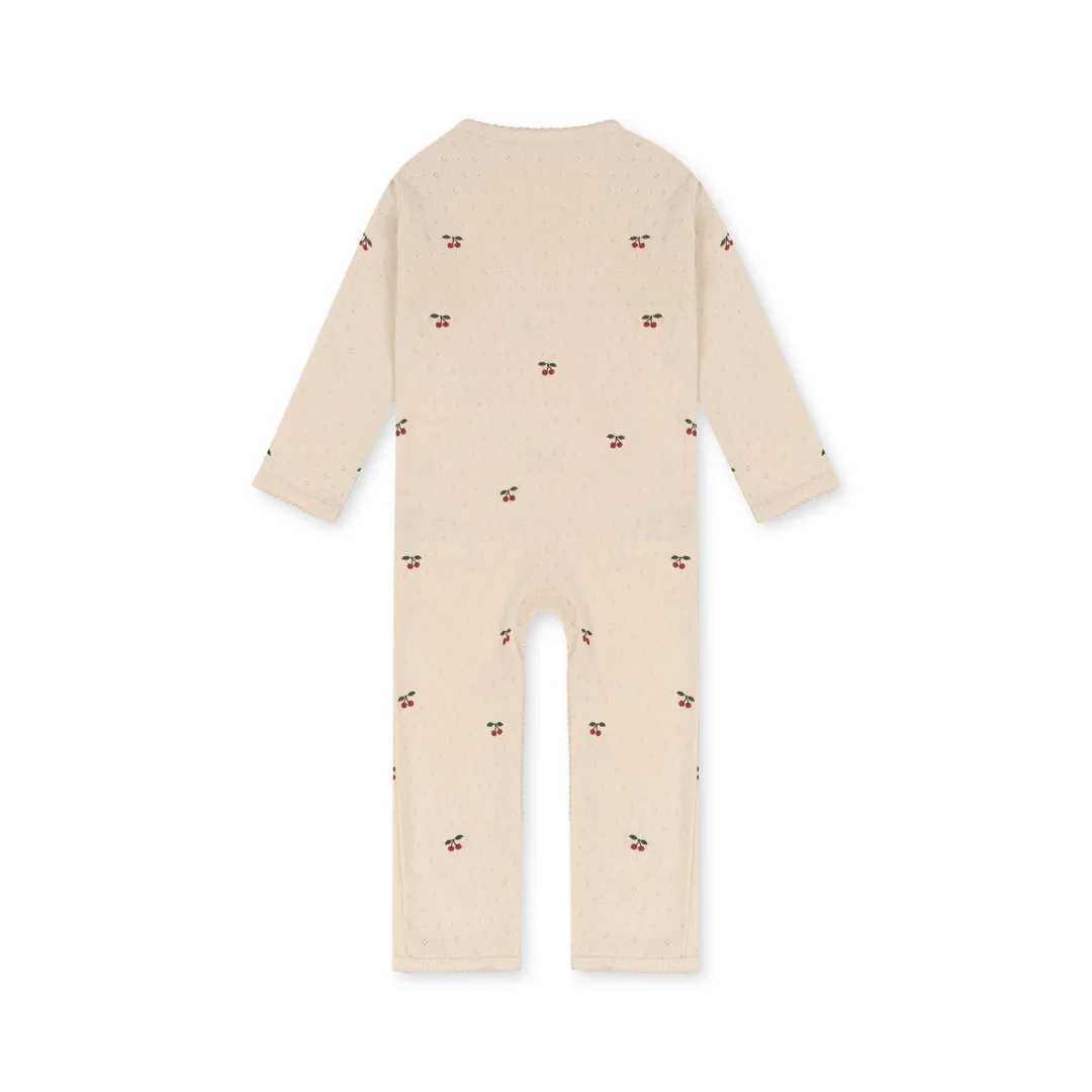 Combinaison douce en jersey ajouré 100% coton biologique. Avec des boutons-pression aux épaules, au bas et aux jambes pour faciliter l’habillage et le déshabillage.