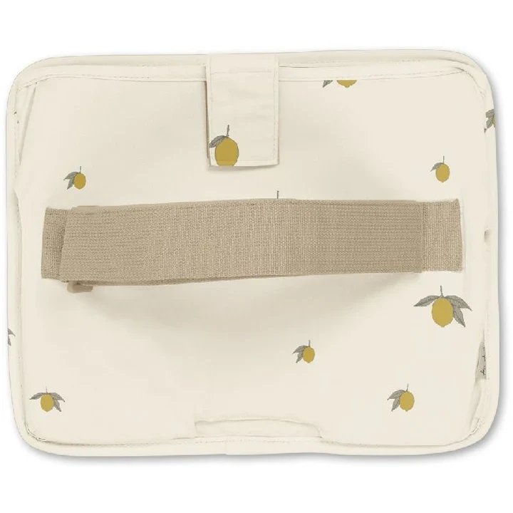 Cet accessoire de voiture élégant de Konges Slojd est idéal pour les longs trajets en voiture. L’imprimé citron frais ou l’imprimé cerise mignonne égayent le voyage et offrent à la fois fonctionnalité et divertissement.