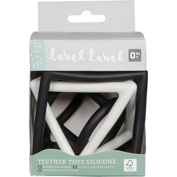 Label Label – Jouets de dentition – Noir et blanc – 3 pièces – Anneaux de dentition géométriques en silicone