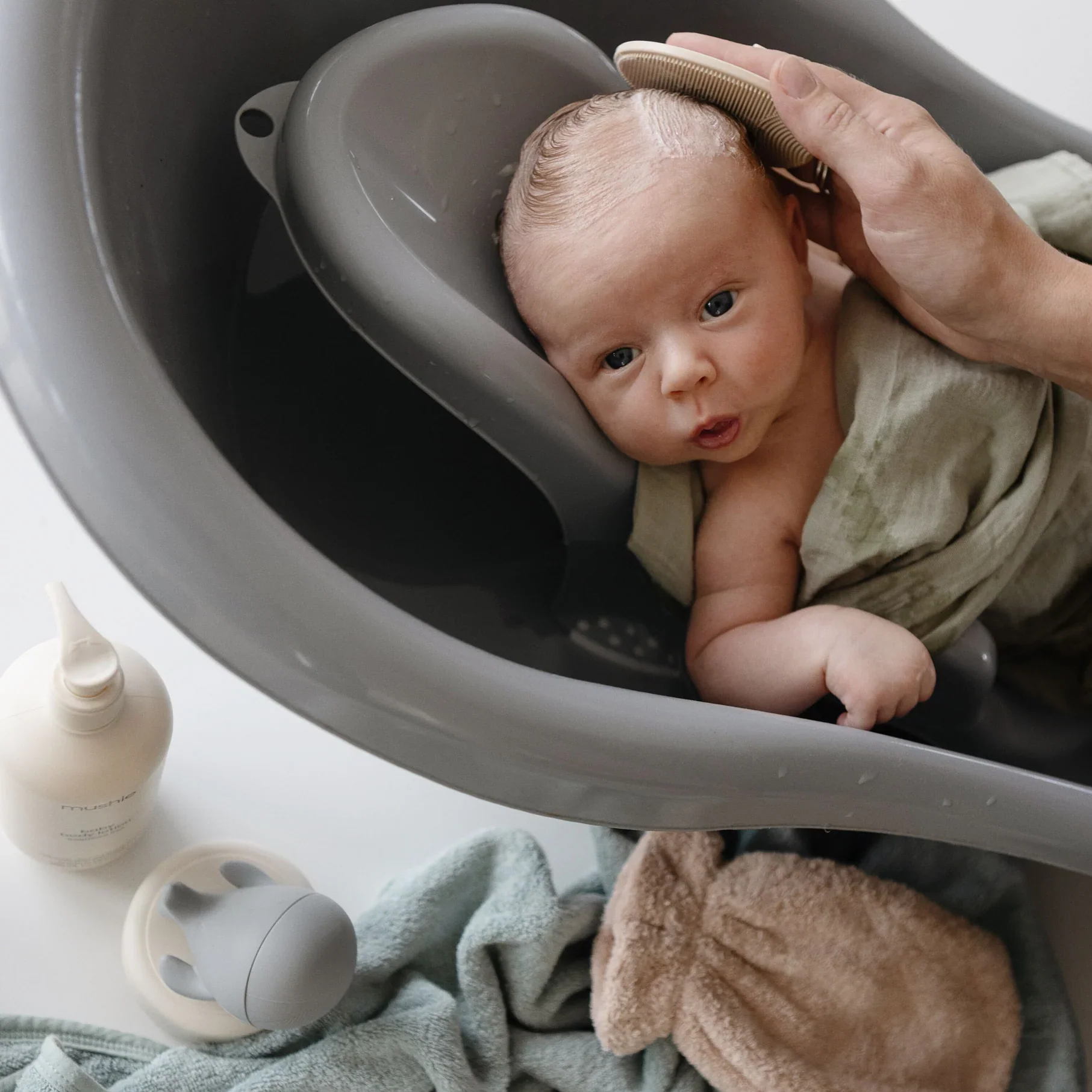 Explorez le monde sous-marin avec le set de bain Sealife (4 pièces) de la marque danoise Mushie.
