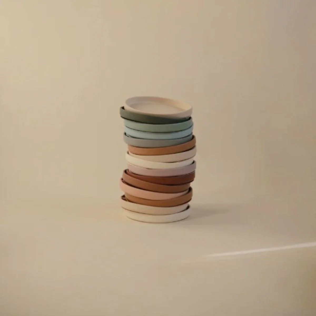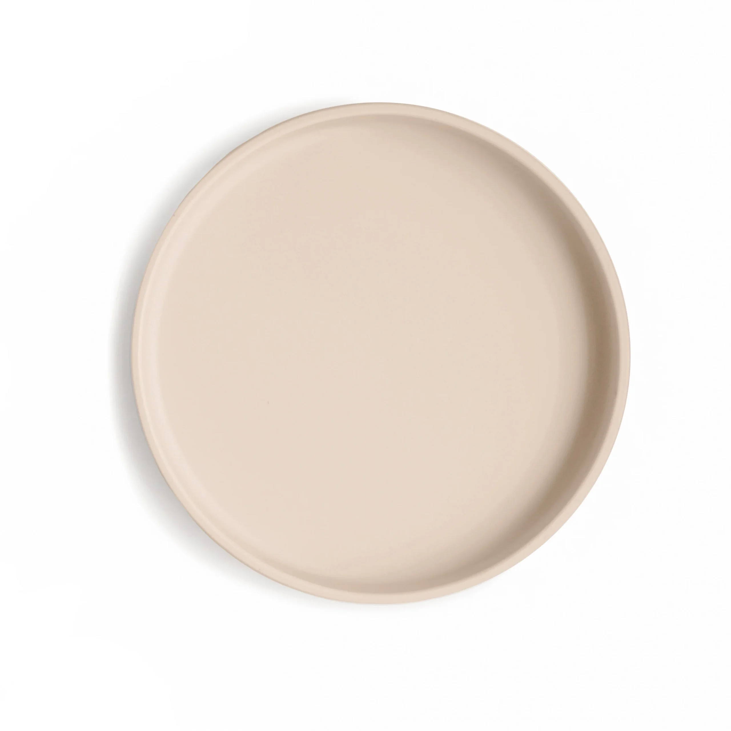 • L’assiette en silicone de Mushie résiste aux chocs, et la ventouse pratique fait des éclaboussures une chose du passé.
