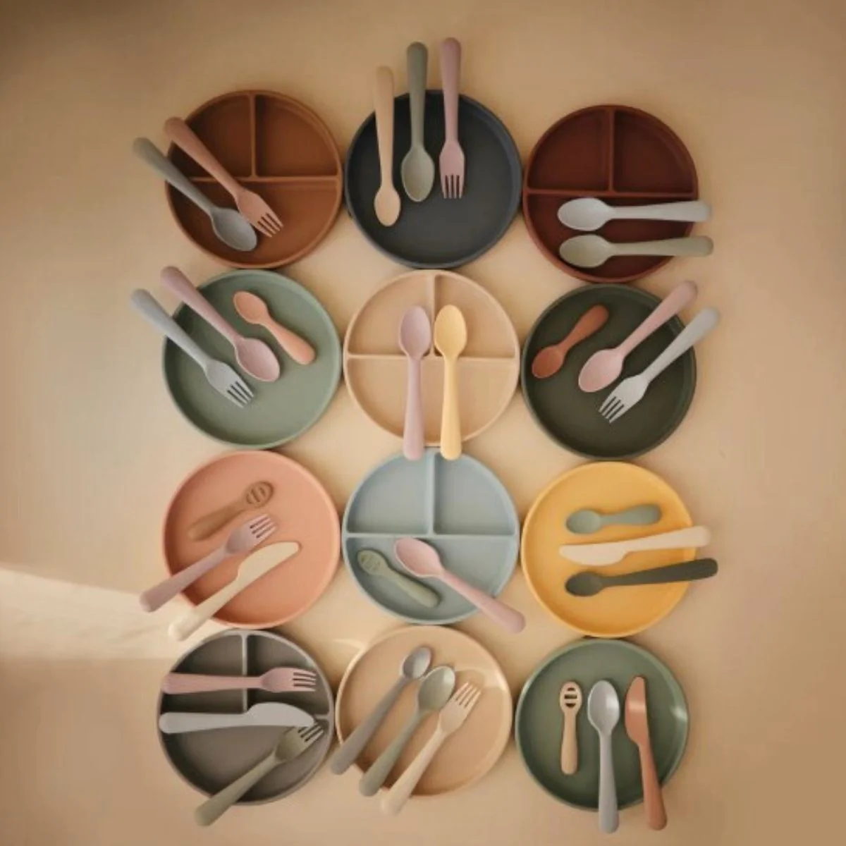 Toute la vaisselle pour enfants Mushie passe au lave-vaisselle et au micro-ondes. Fabriquée à 100 % en silicone de qualité alimentaire, elle est exempte de BPA et de produits chimiques. Les bols et les gobelets en silicone sont disponibles séparément.