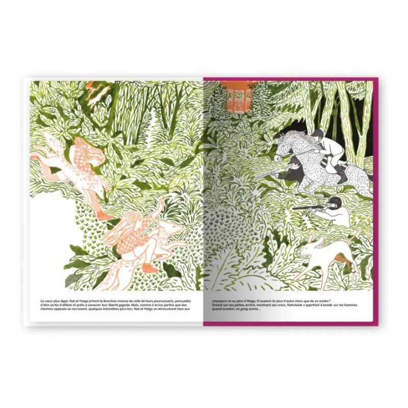 Leur amitié est si forte que le jour où Natcha doit rejoindre la Nature, Helga décide de tout quitter pour partir avec lui. Traqués dans la forêt par le père d’Helga et ses hommes, Natcha et Helga vont apprendre à écouter la Nature pour y trouver tendresse et refuge. Quant aux hommes furieux qui les chassent, auront-ils d’autres choix que d’accepter de laisser advenir ce qui les dépasse?