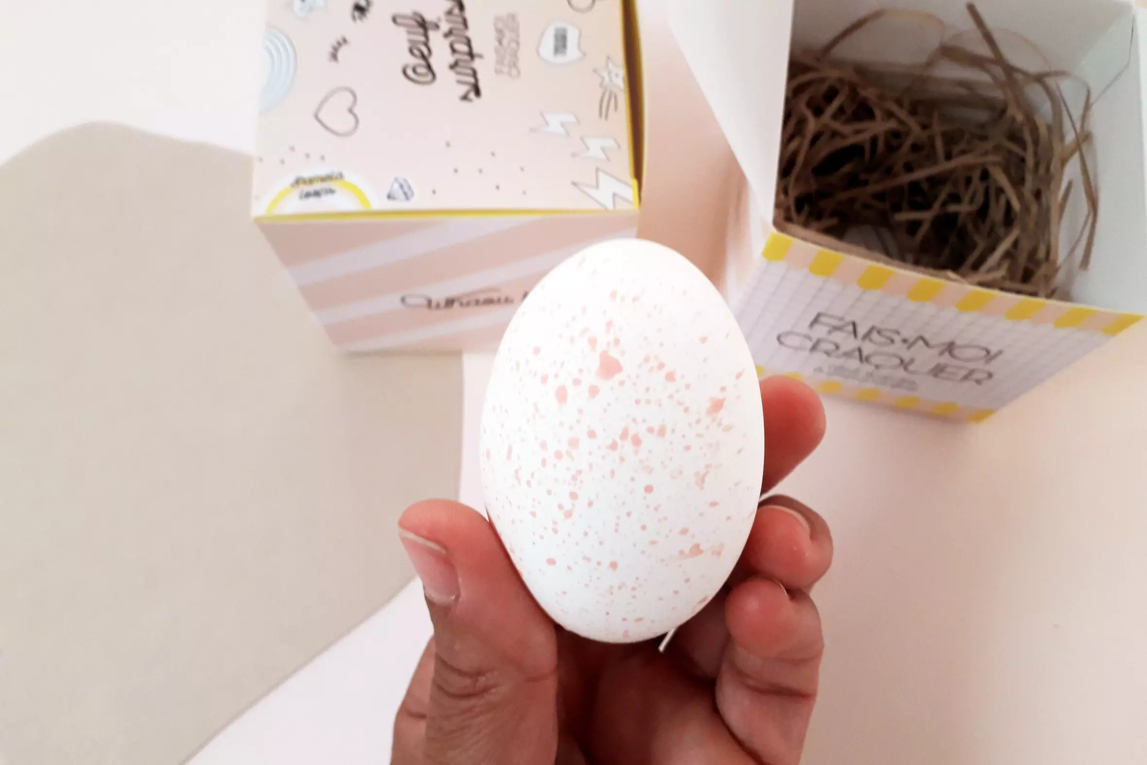 LA solution : la boîte à message oeuf. Personnalisez vous même le message grâce au papier vierge à glisser, pas vos soins, à l’intérieur !