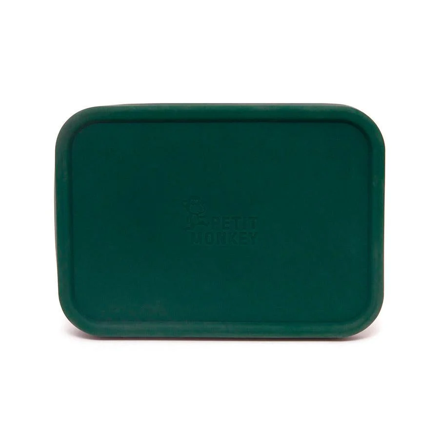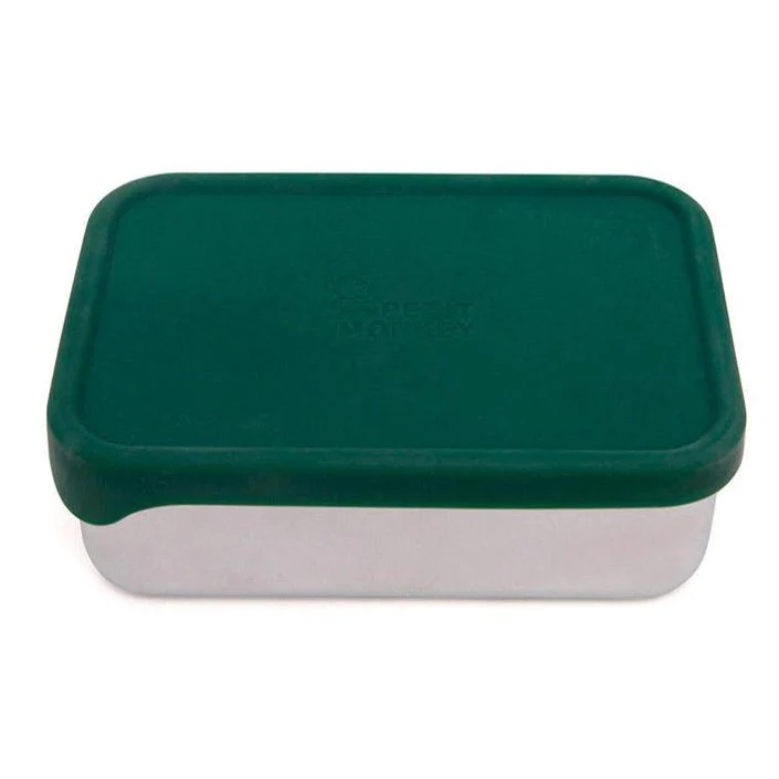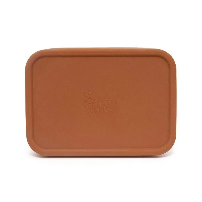 Boîte à lunch Petit Monkey en acier inoxydable avec couvercle en silicone. La boîte à lunch en acier inoxydable peut contenir 4 sandwiches. Le couvercle en silicone est facile à ouvrir et à fermer.