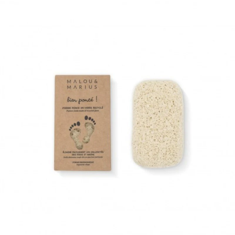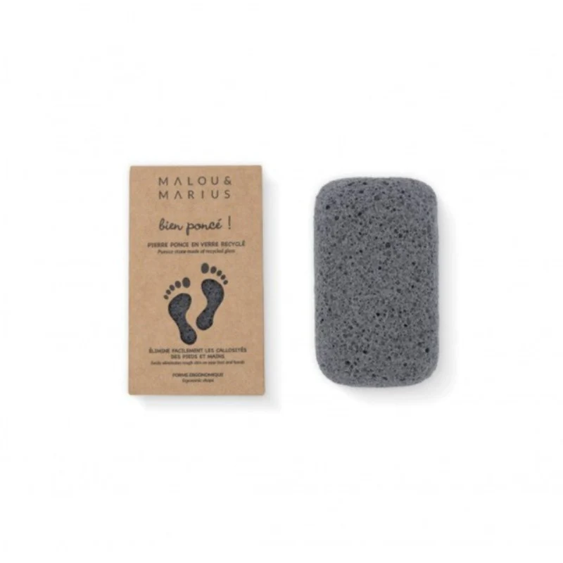 La pierre ponce Malou & Marius est fabriquée à partir de verre recyclé. Sa forme ergonomique permet une très bonne prise en main.