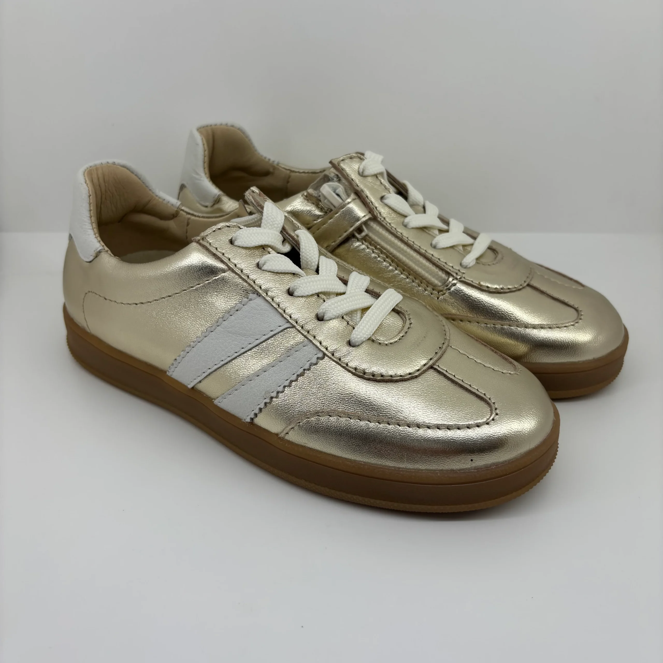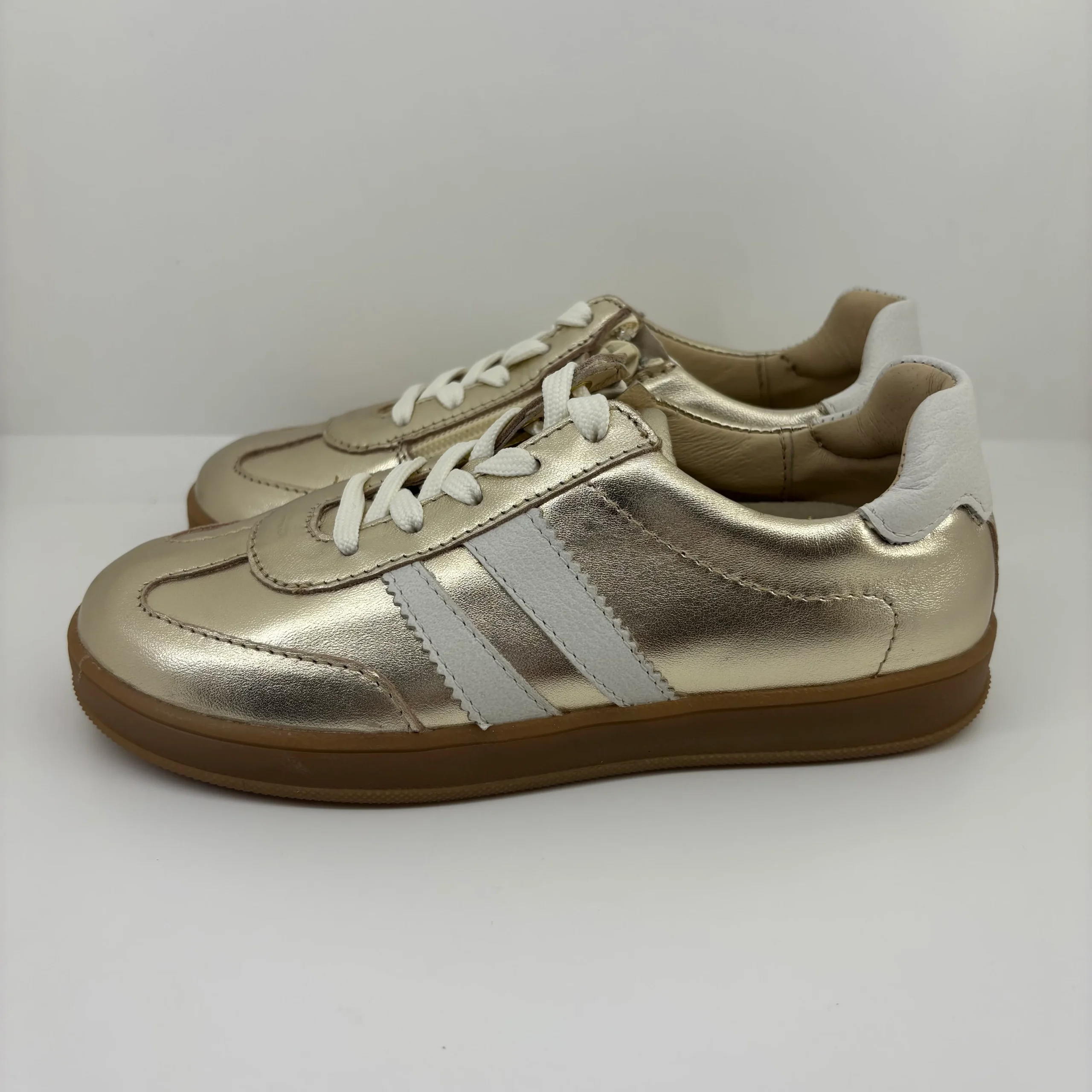 👟 Baskets junior fille en cuir Bellamy – Style vintage, confort et éclat doré ✨💛