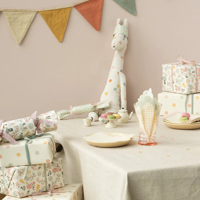 Décorez votre table avec ces serviettes en papier, à pois colorés. Mélangez-les avec d’autres serviettes Maileg pour une touche personnelle. Chaque paquet contient 20 serviettes .
