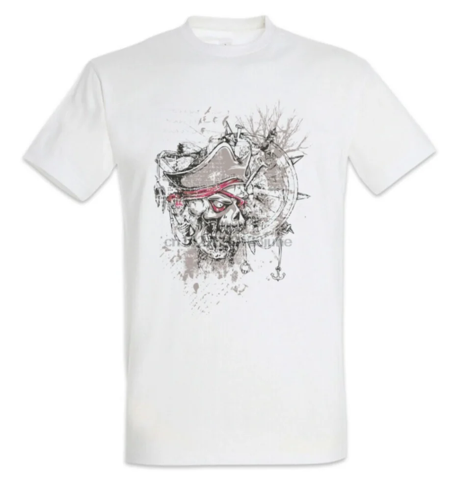Ce vêtement pirate blanc arbore un design élégant et distinctif en son centre. Il présente une tête de mort de profil portant un chapeau et un cache-œil rouge, entourée d’un gouvernail et d’une ancre de bateau entremêlés. Parfait pour les amateurs de piraterie et de style nautique, ce t-shirt combine des éléments classiques et maritimes pour créer un look audacieux et original. Affichez votre esprit aventurier avec ce design unique et captivant.