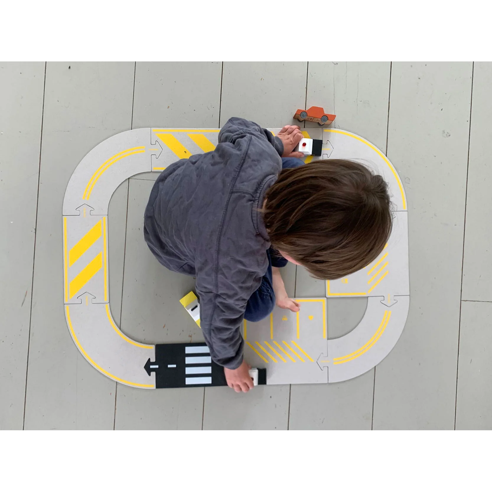 Les pièces de la route en carton recyclé sont spécialement conçues pour être utilisées à la maison. L’avantage est que votre enfant peut écrire, dessiner ou gribouiller dessus.