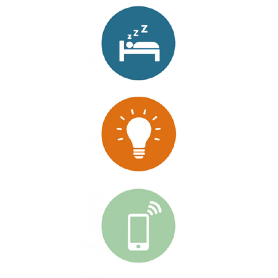 - Rythme du sommeil : la veilleuse devient orange 30 minutes avant le lever et verte au moment de se lever.